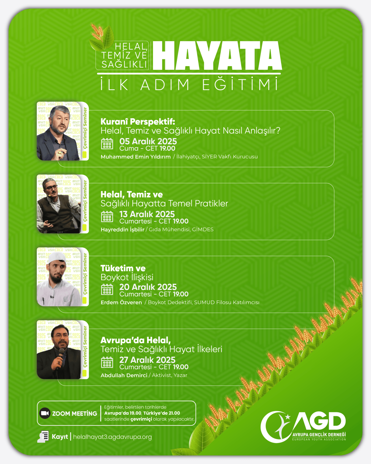 Bu eğitim programına dahil olmak için https://helalhayat3.agdavrupa. adresinden ön kayıt yapılması gerekmektedir. (Aşağıdaki kayıt ol butonundan ön kayıt yapılması gerekmektedir)
